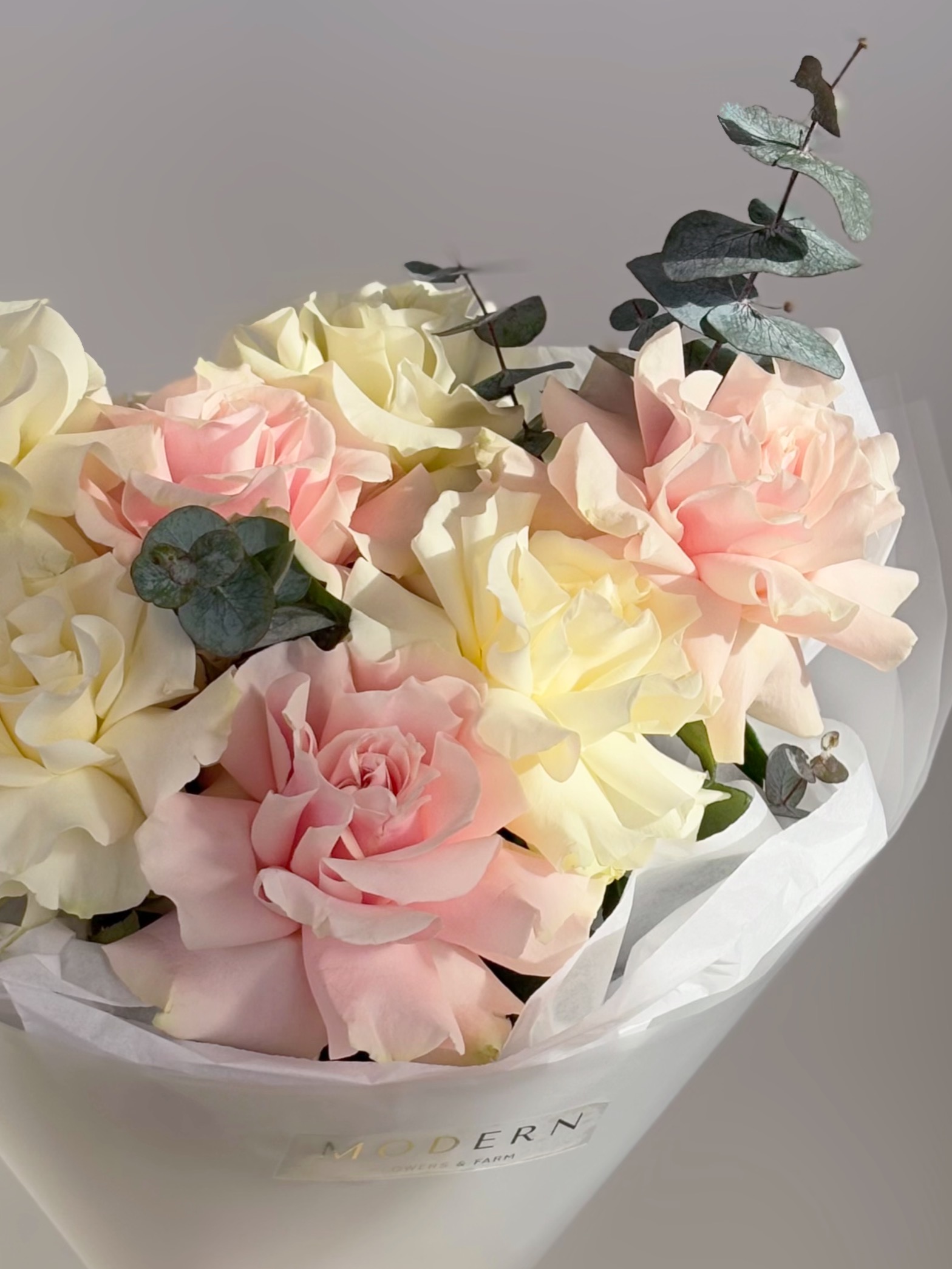 —БУКЕТ ФРАНЦУЗСКИХ РОЗ И ЭВКАЛИПТА