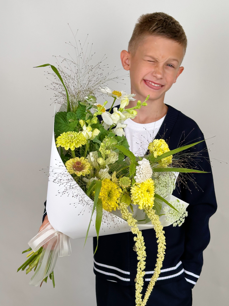 Предлагаем охапки в крафте с цветами, выращенными на нашей ферме — дельфиниум, львиный зев, ромашки, маттиола, астра и другие.