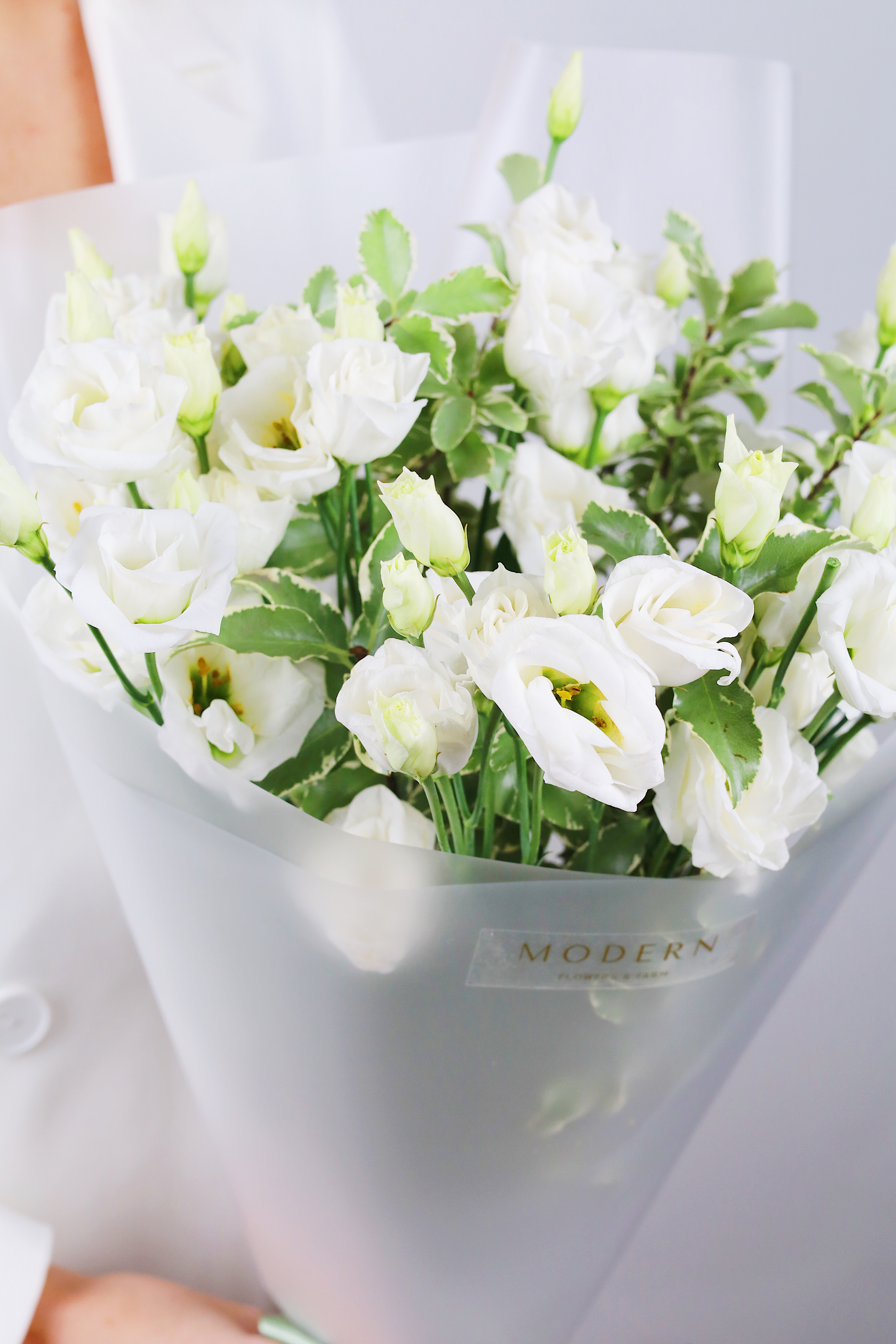 ЭЛЕГАНТНЫЙ БУКЕТ С ЛИЗИАНТУСОМ И ЗЕЛЕНЬЮ