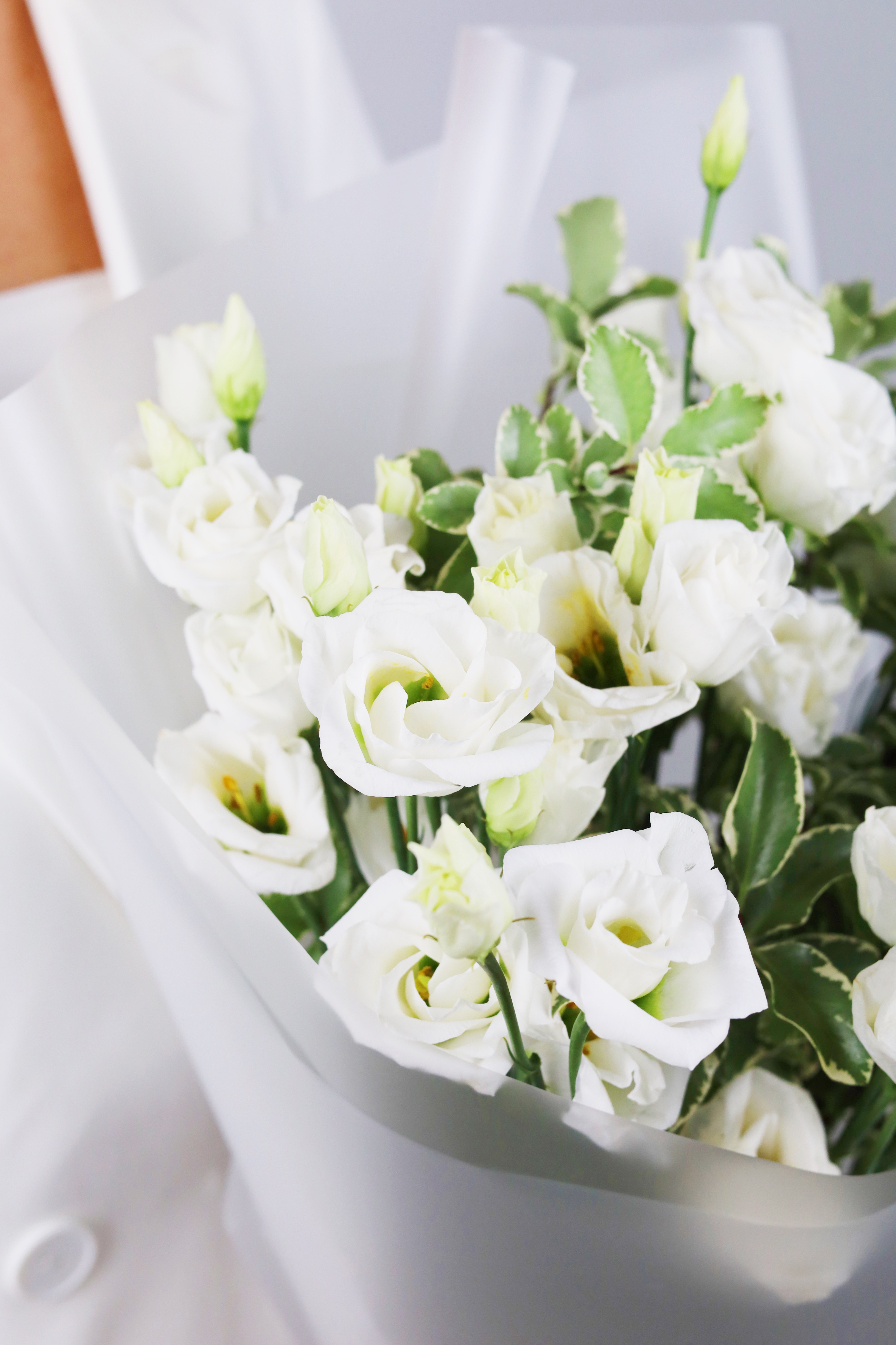 —ЭЛЕГАНТНЫЙ БУКЕТ С ЛИЗИАНТУСОМ И ЗЕЛЕНЬЮ
