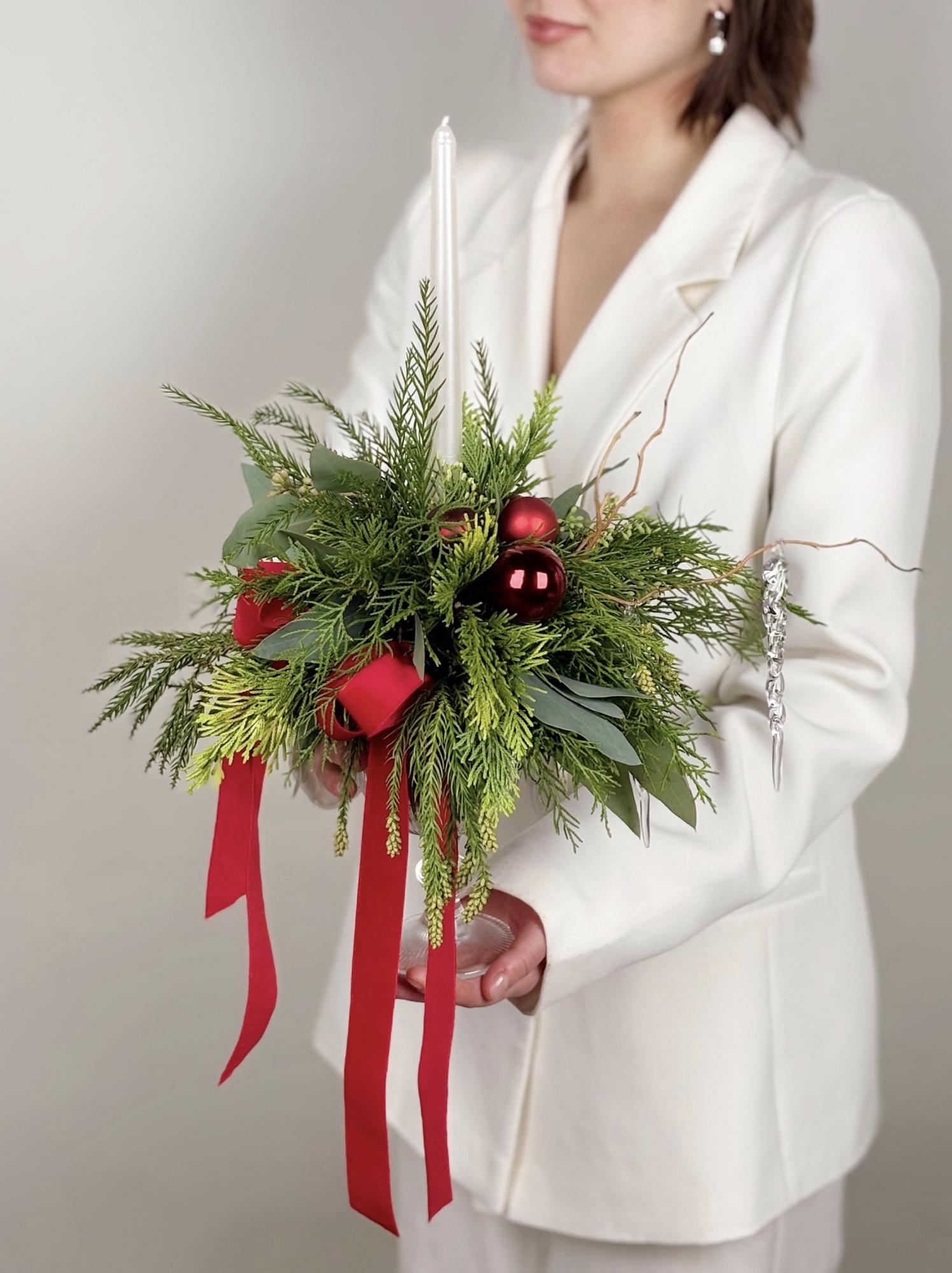 —ХВОЯ В БОКАЛЕ СО СВЕЧЕЙ В КРАСНОМ ОТТЕНКЕ