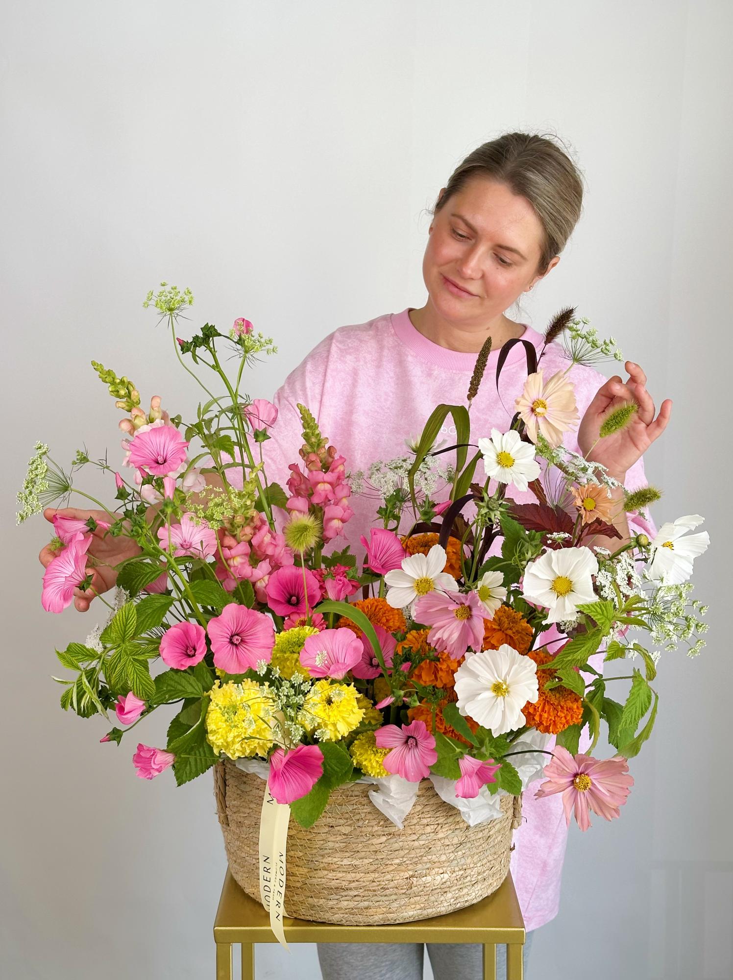 Летняя сказка в плетёной корзине: фермерские цветы для вашего уюта