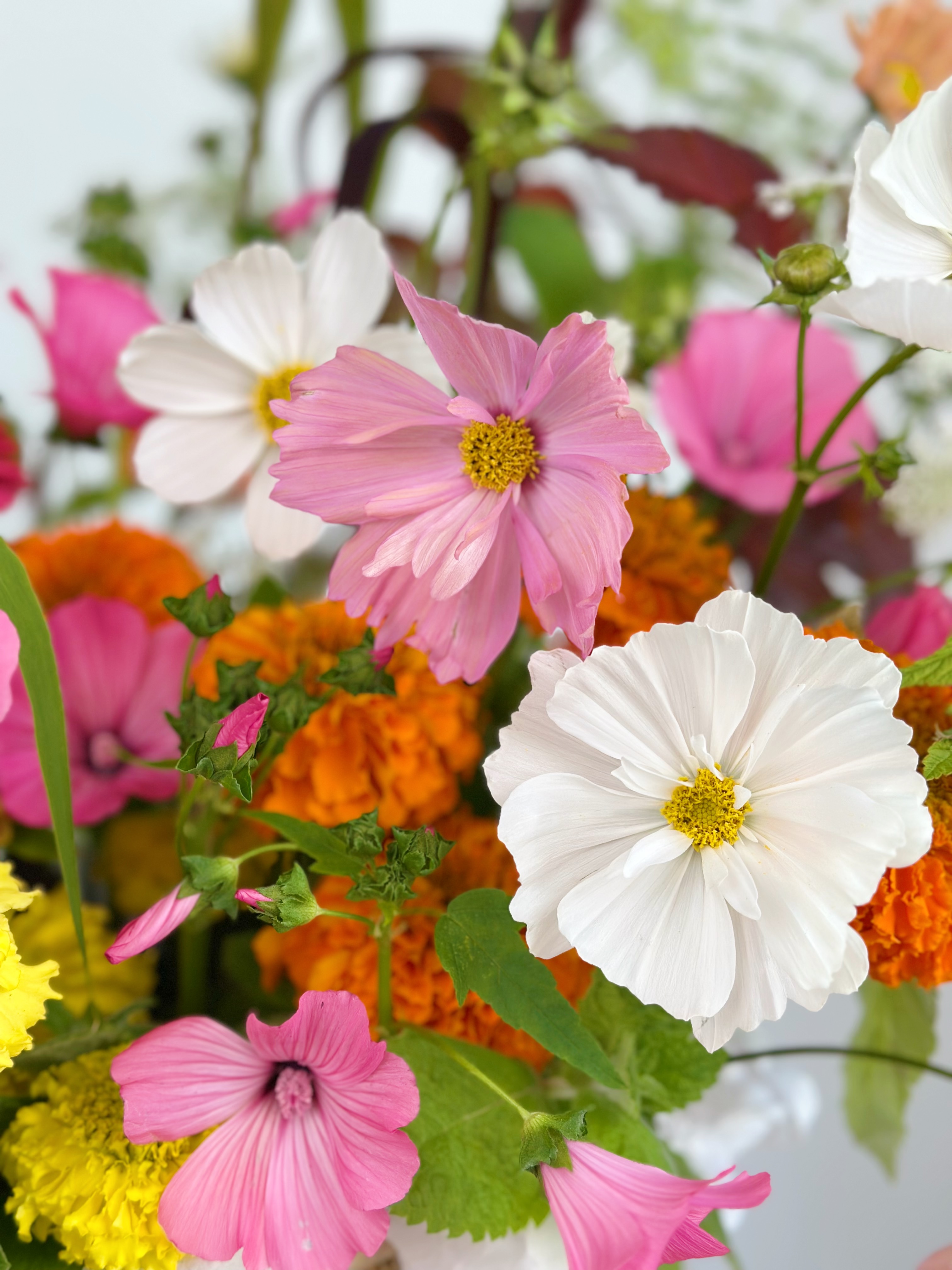 Представляем вам уникальную композицию из свежесрезанных фермерских цветов, собранных с любовью на наших полях. Плетёная корзина, наполненная яркими летними цветами, создаст атмосферу уюта в вашем доме.