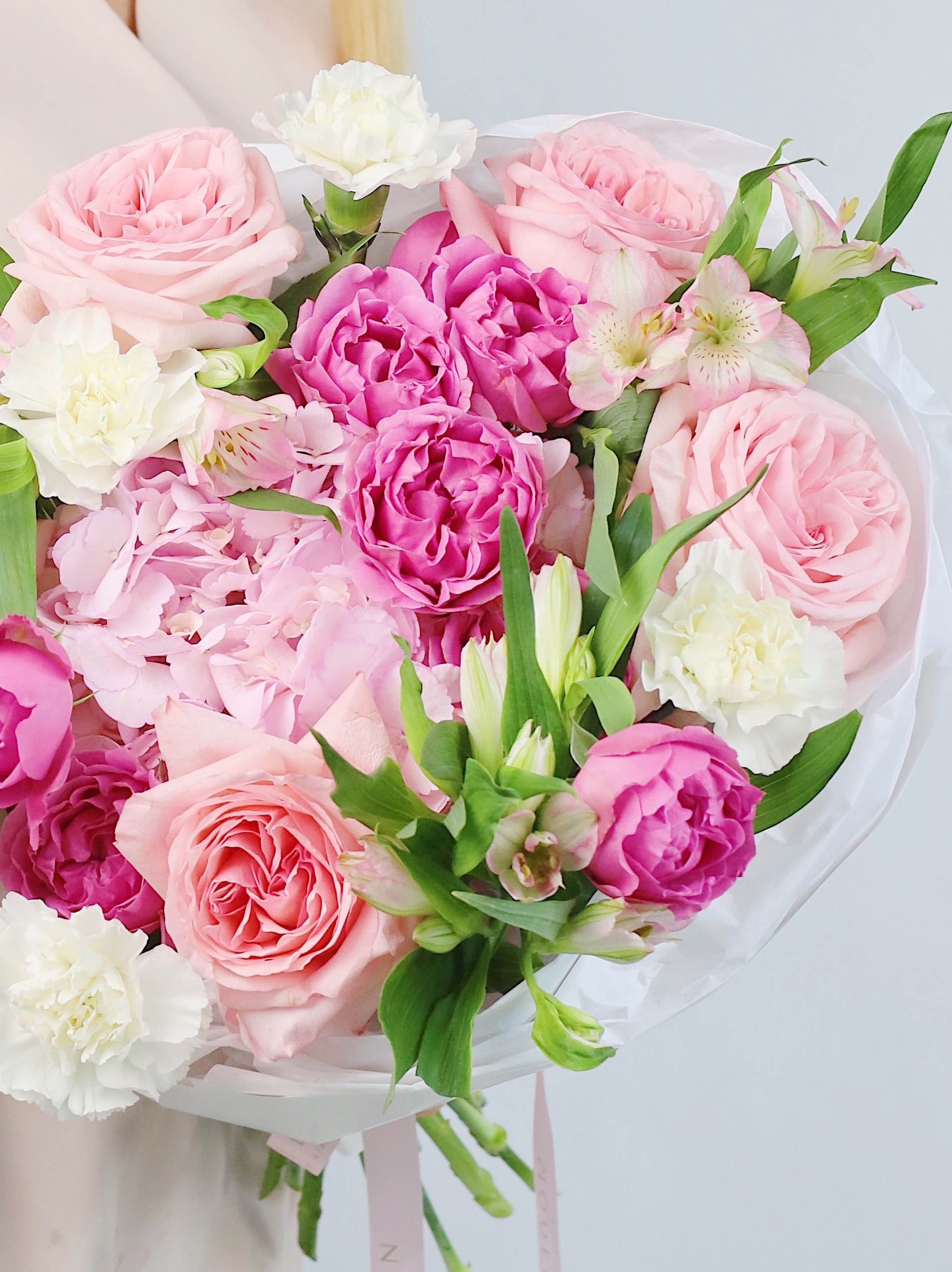 —КРУГЛЫЙ БУКЕТ С ПИОНОВИДНЫМИ РОЗАМИ