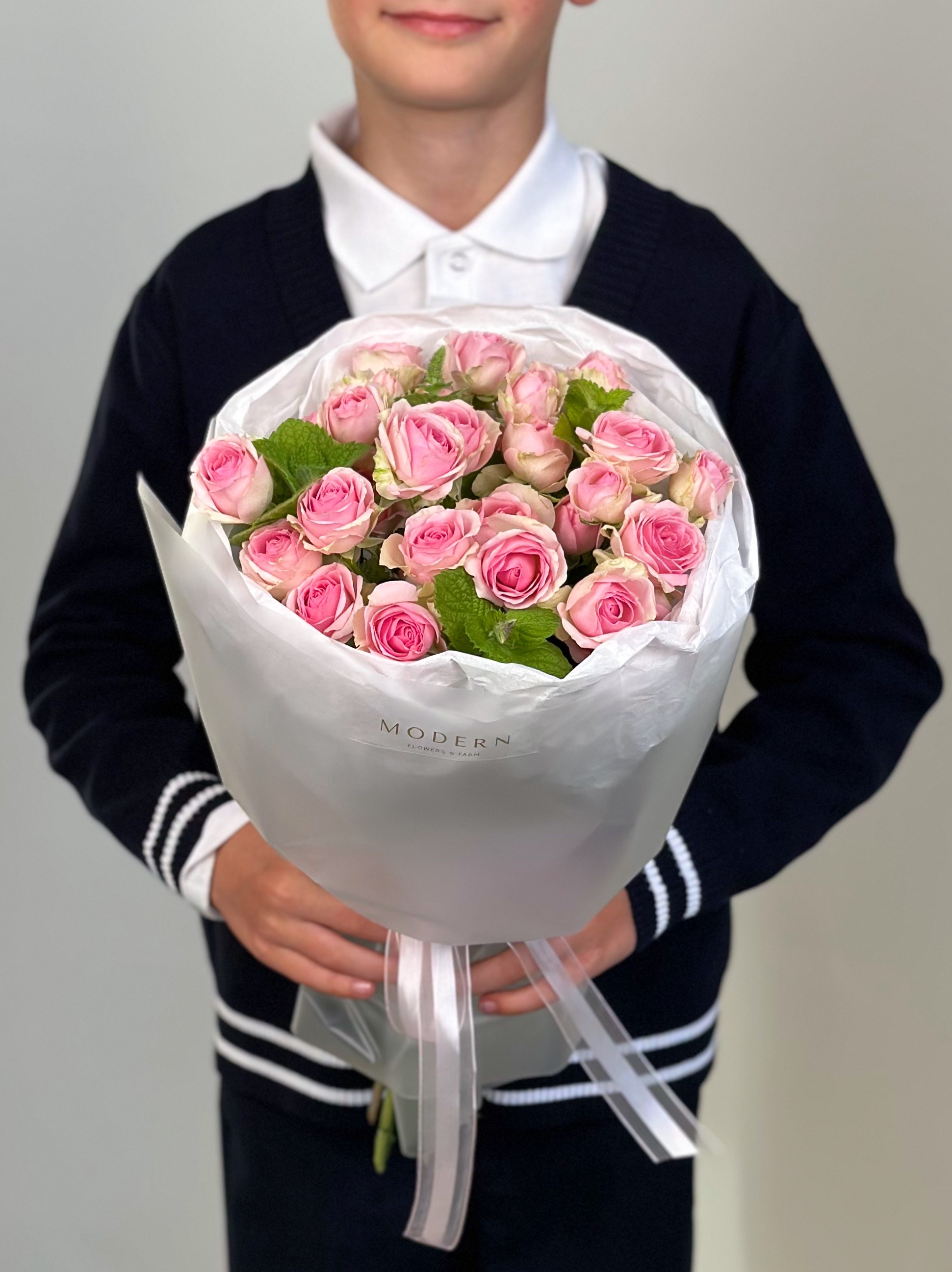 —НЕЖНЫЙ БУКЕТ С КУСТОВОЙ РОЗОЙ И МЯТОЙ