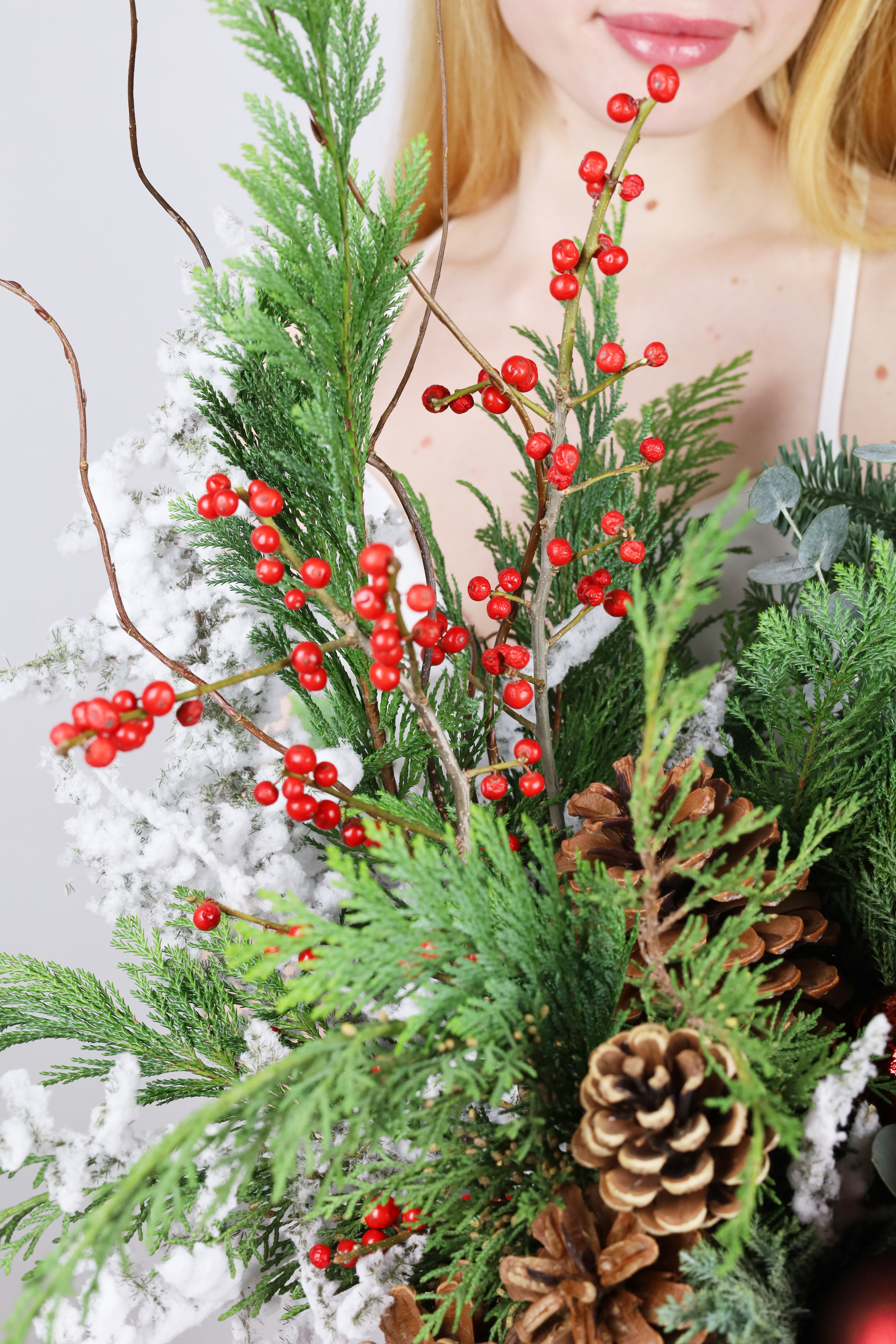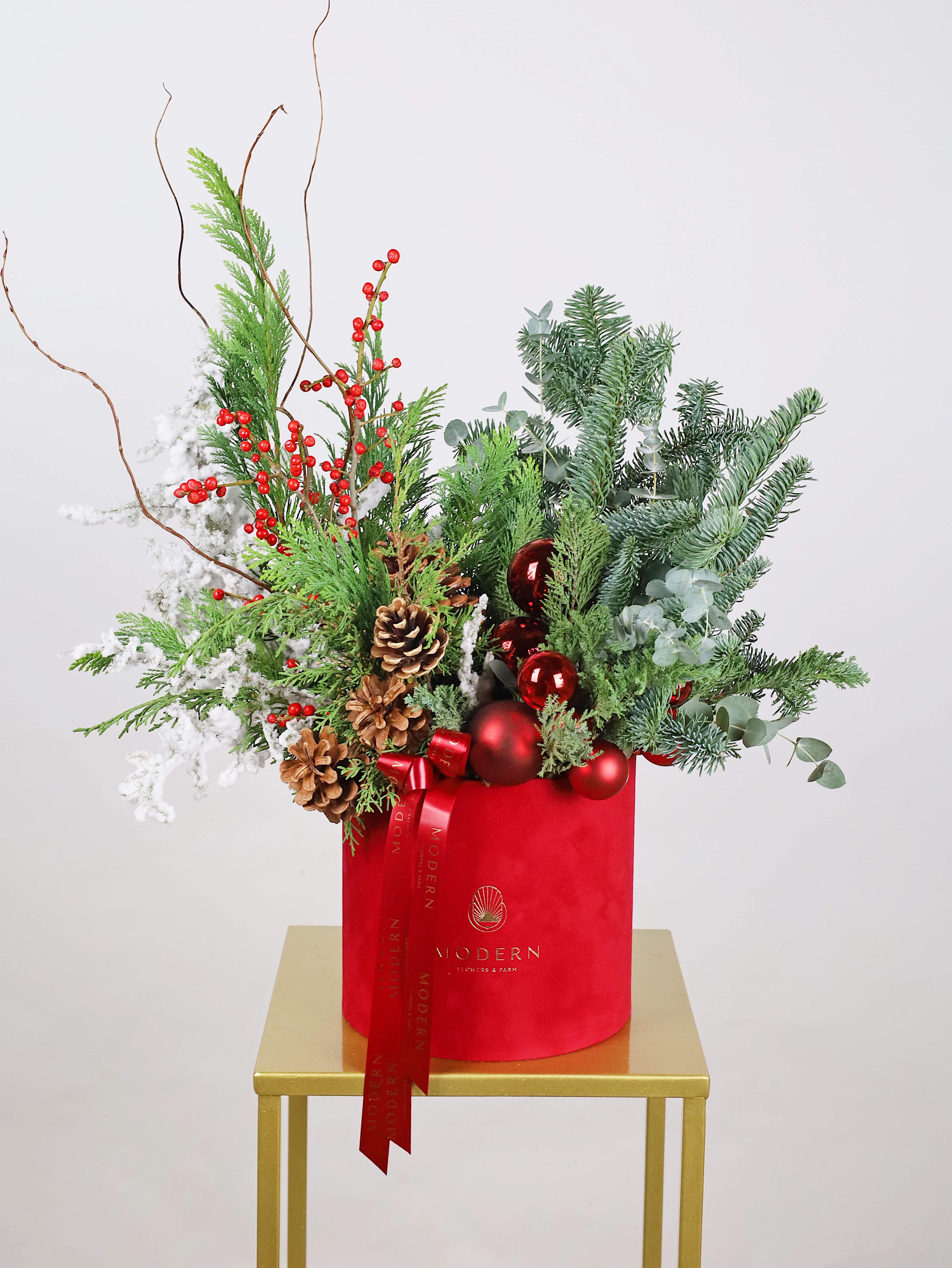 —ТОРЖЕСТВЕННАЯ ХВОЙНАЯ КОМПОЗИЦИЯ В БАРХАТНОЙ КОРОБКЕ