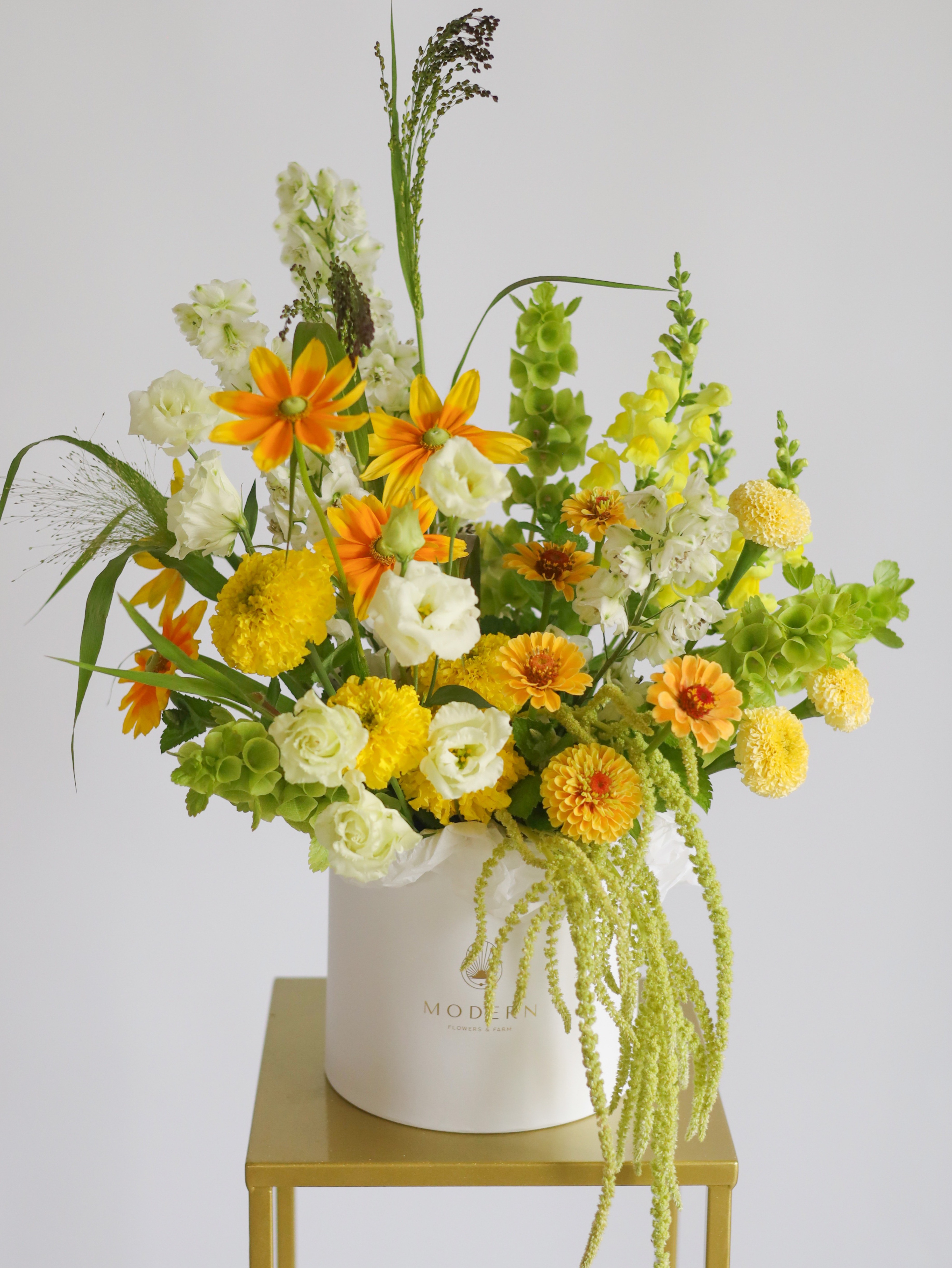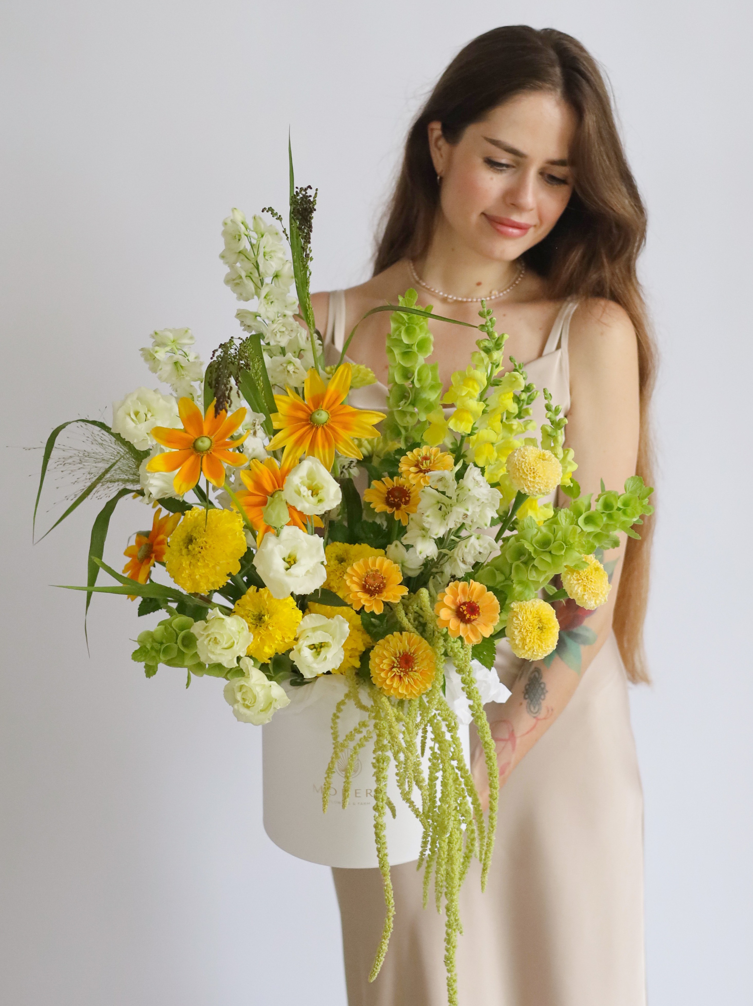 Представляем вашему вниманию великолепную композицию, созданную из свежесрезанных фермерских цветов, которые воплощают в себе всю красоту летнего сезона.