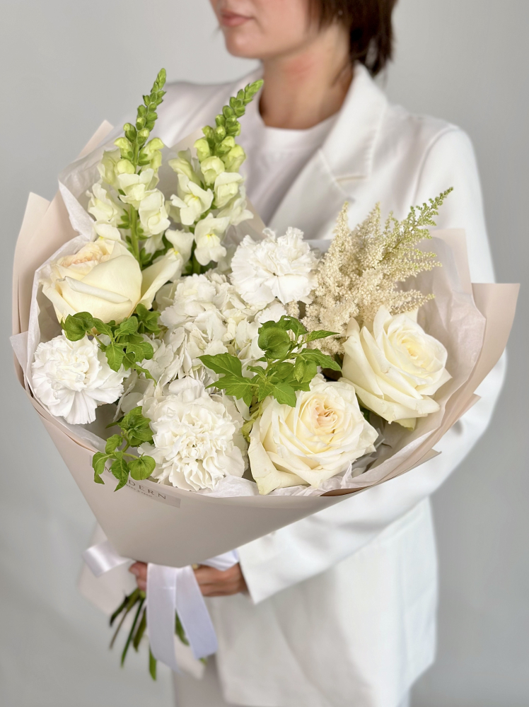 БЕЛЫЙ БУКЕТ С ПИОНОВИДНОЙ РОЗОЙ И ГОРТЕНЗИЕЙ БЕЛЫЙ БУКЕТ С ПИОНОВИДНОЙ РОЗОЙ И ГОРТЕНЗИЕЙ
